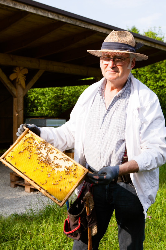 Zu einer kleinen aber nicht minder interessanten Führung hat am 26. Mai 23 der Bachmayr Schorsch, Vorstand vom hiesigen Bienenzuchtverein, die Vorstandschaft des Gartenbauvereins Tuntenhausen eingeladen. Es galt als Dankeschön für die finanzielle Unterstützung, die der OGV dem Verein jährlich zukommen lässt, sowie die Mithilfe bei der bienenfreundlichen Dachbepflanzung am Lehrbienenstand. Er nahm sich besonders viel Zeit, uns verschiedene Abläufe eines Bienendaseins anschaulich zu erklären. Wir waren sehr beeindruckt und fasziniert, von diesen kleinen, aber äußerst erstaunlichen Lebewesen, die uns Obstbaumbesitzern, dem Obst- und Gartenbauverein allgemein und letztendlich auch der Mosterei einen außerordentlich wichtigen Dienst erweisen.
